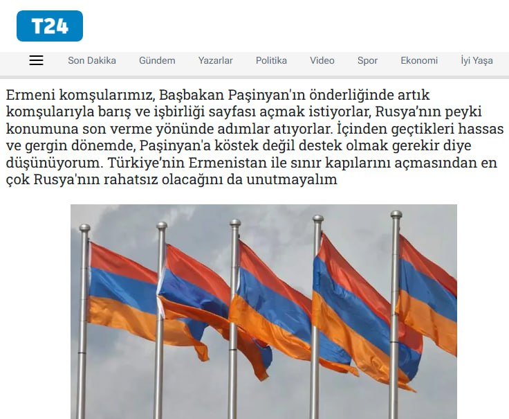 Армянские соседи под руководством премьер-министра хотят открыть новую страницу мира и сотрудничества с соседями, предпринимают шаги к выходу из орбиты России. В этот чувствительный период,Турции следует оказывать поддержку Пашиняну, а не чинить препятствия.