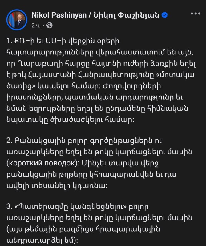 Раньше фокус был на Карабахе, теперь, когда вопрос «решён», он снова говорит то же самое — ясно и однозначно. Он заявляет: «Я прикован к вашей стране, дорогие армяне, я хочу захватить, сделать это через себя». А у нас до сих пор некоторые продолжают твердить пустой тезис «он так говорит только для внутренней аудитории».