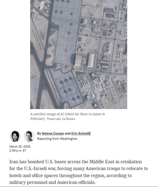 • ​​По данным The New York Times, после ударов Ирана по американским базам на Ближ…