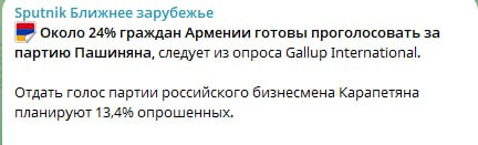 🔺Начнем с того уважаемые колеги @sputniklive, что Gallup International в Армении опросы никогда не проводил,их проводит местная контора MPG очень опосредованно связана с ним, ну приблизительно как Спутник Лайв связан с вакциной Спутник😜, а во-вторых мы уверены, что MPG население не опрашивает, а сразу выдает заранее заготовленные цифры, иначе бы такой социологический бред, который они тиражируют, был бы исключен.